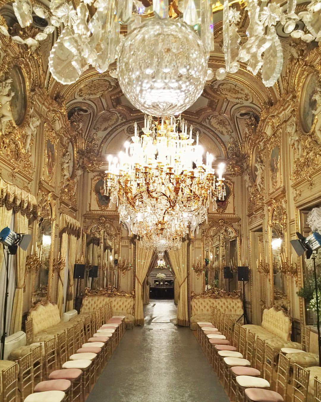 Lámparas de araña de cristal de Murano, tapices, cortinas de seda...